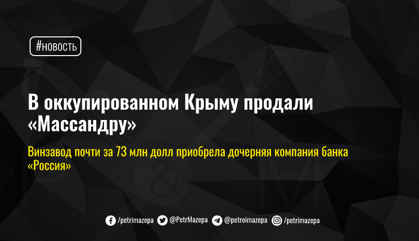 В оккупированном Крыму продали крупнейший винзавод на полуострове - «Массандру». Акции предприятия почти за 73 млн долларов приобрела дочерняя компания банка «Россия».