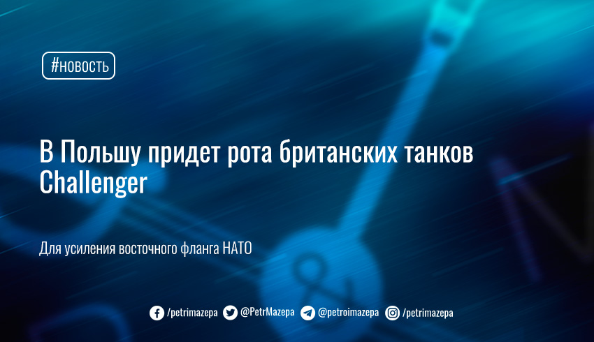 «На этой неделе в составе подкрепления от союзников в Польшу прибудет британская рота танков Challenger для усиления группировки, размещенной в нашей стране. Это еще одно убедительное доказательство британской поддержки восточного фланга», — написал он в Twitter.