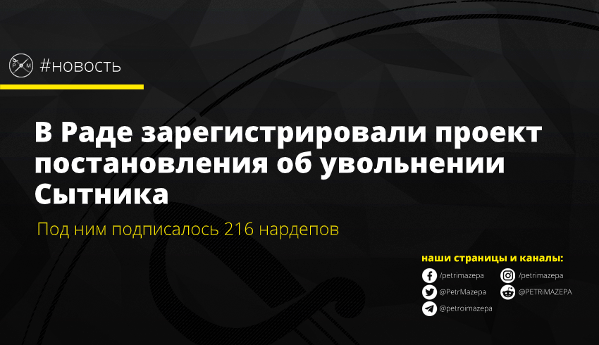 В Верховной Раде был зарегистрирован проект постановления №3039 об увольнении Артема Сытника с должности Директора Национального антикоррупционного бюро Украины.