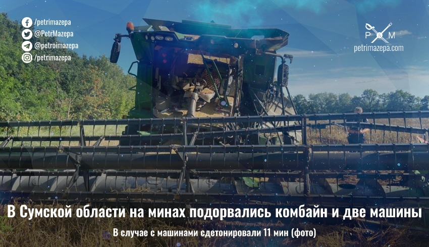 В Ахтырском районе Сумской области только за вчера на минах подорвались комбайн и две машины. Один человек погиб, еще четверо ранены. Об этом сообщил глава Сумской областной военной администрации (ОВА) Дмитрий Живицкий.
