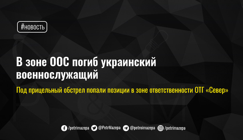 «В полосе ответственности ОТГ «Север», в результате прицельного обстрела вооруженными формированиями Российской Федерации позиций наших подразделений, один военнослужащий ВС Украины получил огнестрельное пулевое ранение несовместимо с жизнью», - сообщается в Facebook ОТГ «Север».