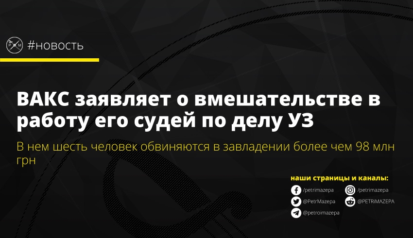 Высший антикоррупционный суд (ВАКС) заявил о вмешательстве в деятельность судей по делу хищения 98 млн грн «Укрзалізниці» (УЗ).