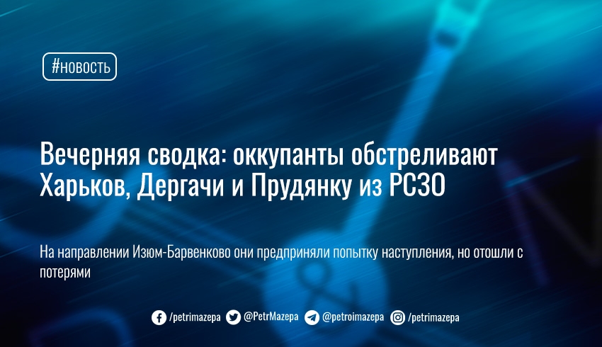 Вечерняя сводка: оккупанты обстреливают Харьков, Дергачи и Прудянку из РСЗО