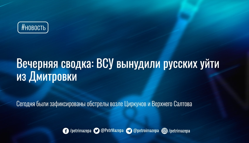 Вечерняя сводка: ВСУ вынудили русских уйти из Дмитровки