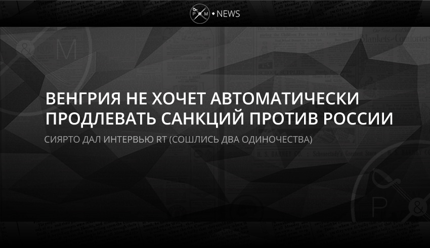 Министр иностранных дел Венгрии дал интервью российскому пропагандистскому каналу RT. В нем он рассказал, что считает неправильным автоматическое продление санкций и необходимо вести дискуссию, чтобы сроки санкций прошли, а продлить забыли.