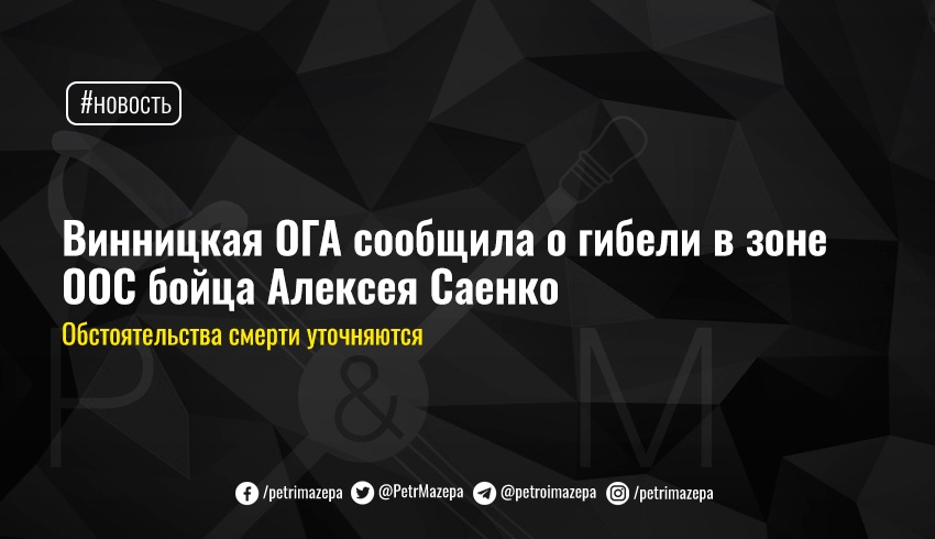 Винницкая областная государственная администрация сообщила о гибели на Донбассе военнослужащего Алексея Саенко.