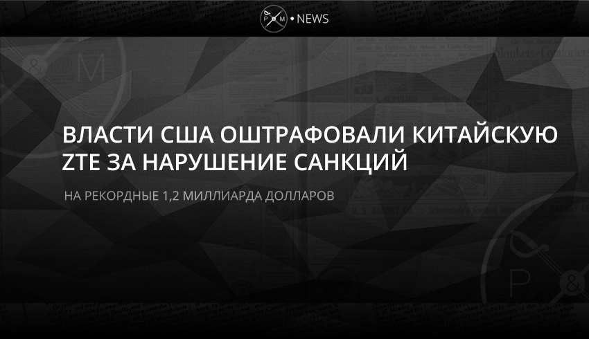 Министерство торговли США сообщает, что принято решение оштрафовать китайского производителя электроники и коммуникационного оборудования ZTE на 1,2 млрд долларов. Причина штрафа - нарушение санкционного режима в отношении Ирана и Северной Кореи.