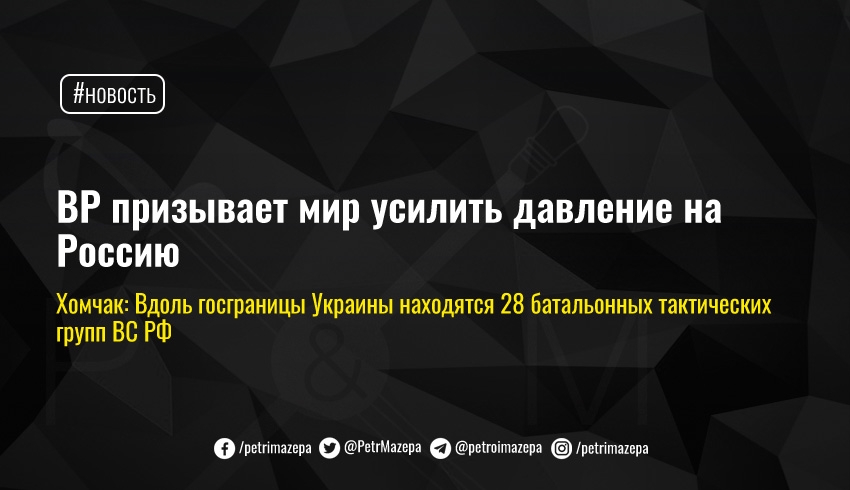 Главнокомандующий ВСУ Руслан Хомчак во время свого выступления рассказал, что по состоянию на 30 марта вдоль государственной границы Украины содержится 28 батальонных тактических групп вооруженных сил страны-агрессора.