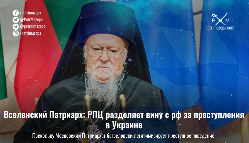 Вселенский Патриарх: РПЦ разделяет вину с рф за преступления в Украине