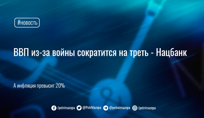 Национальный банк прогнозирует, что экономика Украины в этом году из-за войны сократится не менее чем на треть, а потребительская инфляция превысит 20%.