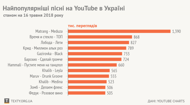 YouTube показал предпочтения украинцев по клипам (инфографика)