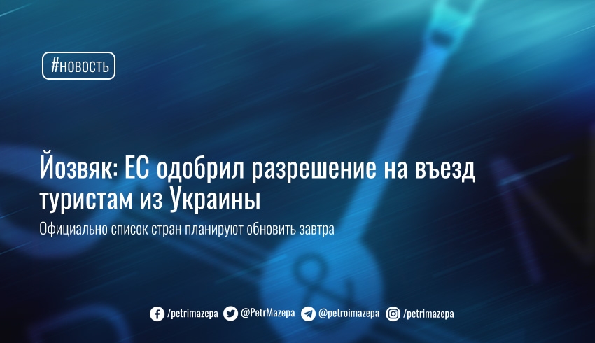 Йозвяк: ЕС одобрил разрешение на въезд туристам из Украины