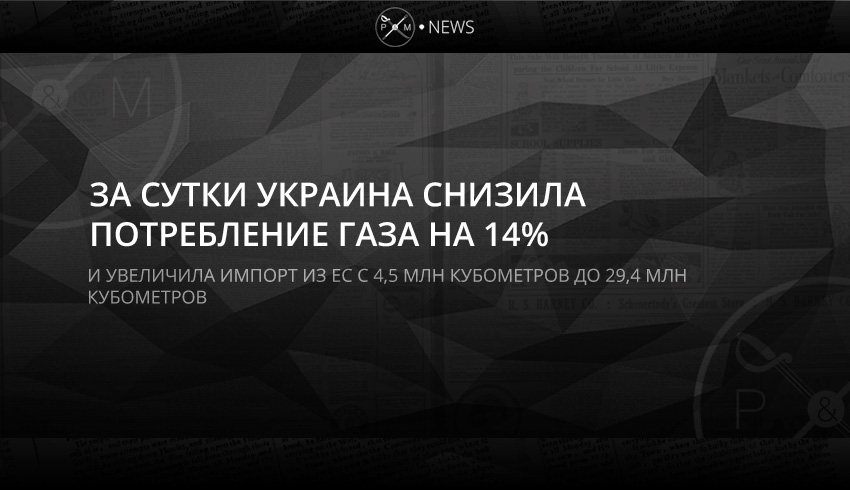 За сутки Украина снизила потребление газа на 14%