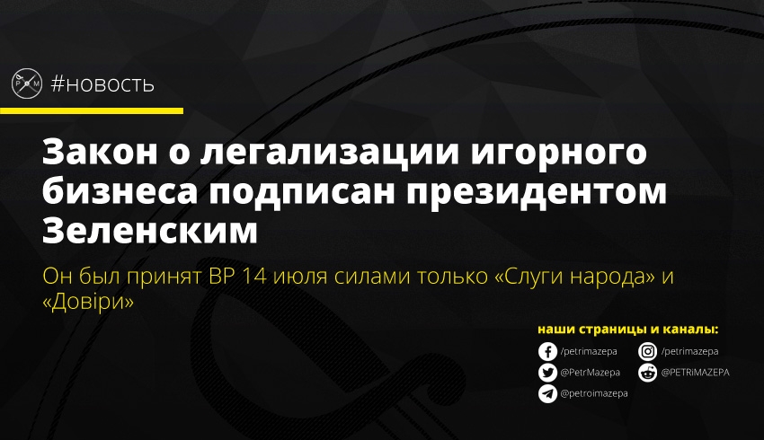 Закон о легализации игорного бизнеса подписан президентом Зеленским