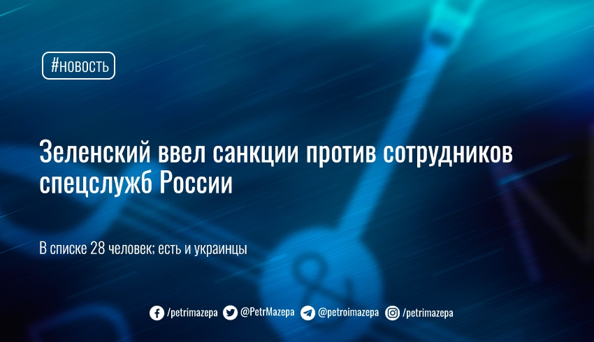 Президент Владимир Зеленский ввел в действие санкции Совета национальной безопасности и обороны против сотрудников спецслужб России. Об этом сообщает Офис президента.