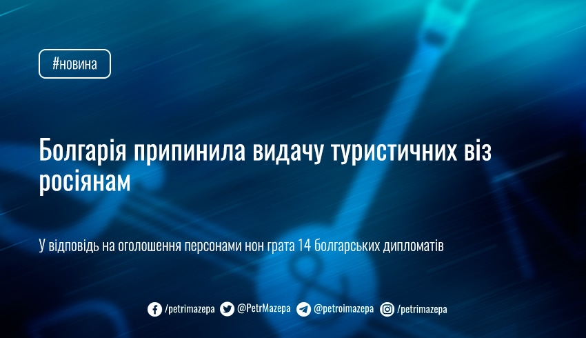 Консульська служба Болгарії тимчасово припинила видачу туристичних віз росіянам. Причиною цього рішення називають оголошення персонами нон грата 14 співробітників диппредставництва та консульських установ Болгарії в Росії.