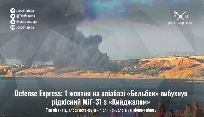 Defense Express: 1 жовтня на авіабазі «Бельбек» вибухнув рідкісний МіГ-31 з «Кинджалом»