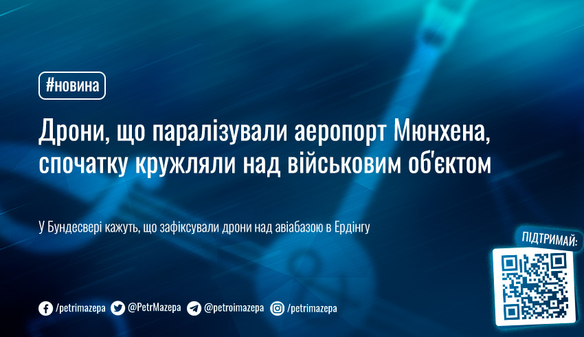 У німецькій армії повідомили, що дрони, що паралізували на кілька годин роботу аеропорту Мюнхена, спочатку помітили над авіабазою в Ердінгу.