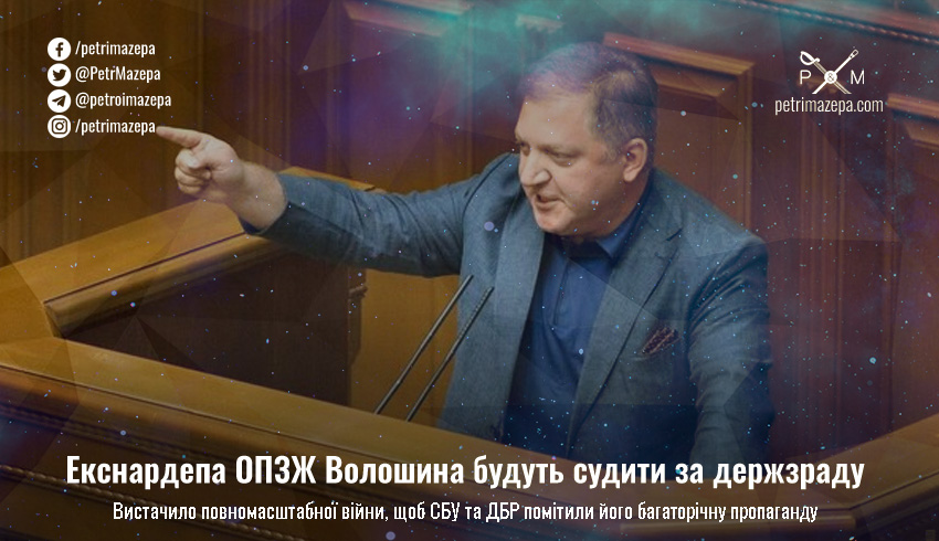 Як так трапилось, що «останні роки» нардеп Волошин мав можливість вести пропаганду, і як так трапилось, що підозра для нього з’явилась тільки за рік після його втечі за кордон, не повідомляється.