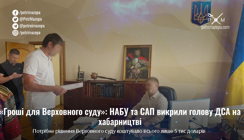 Національне антикорупційне бюро України та Спеціальна антикорупційна прокуратура викрили голову Державної судової адміністрації на підбурюванні до надання хабаря — він обіцяв «допомогти» з отриманням бажаного рішення Верховного суду за 2,5 тис. доларів, але щось пішло не так.