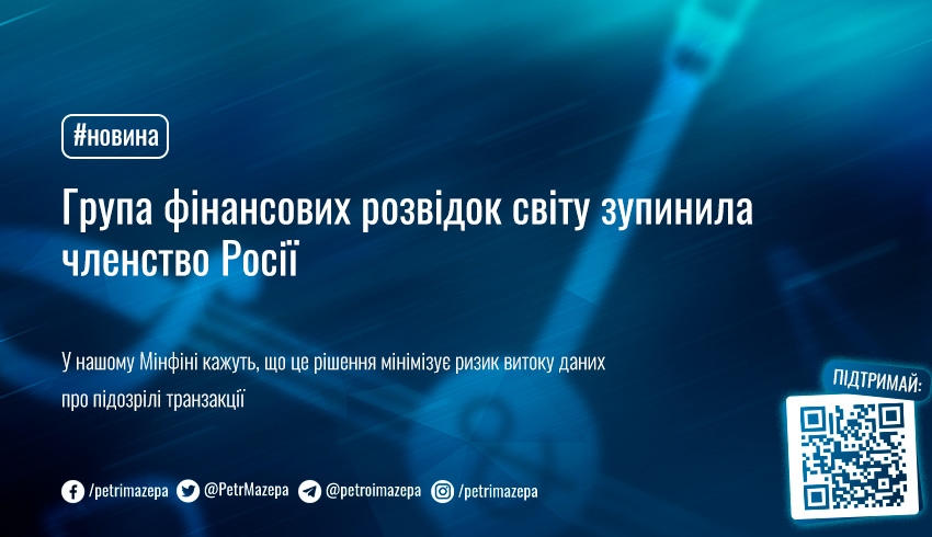 Еґмонтська група підрозділів фінансової розвідки (Egmont Group) зупинила членство Росфінмоніторингу, підрозділу фінансової розвідки Росії, у групі.