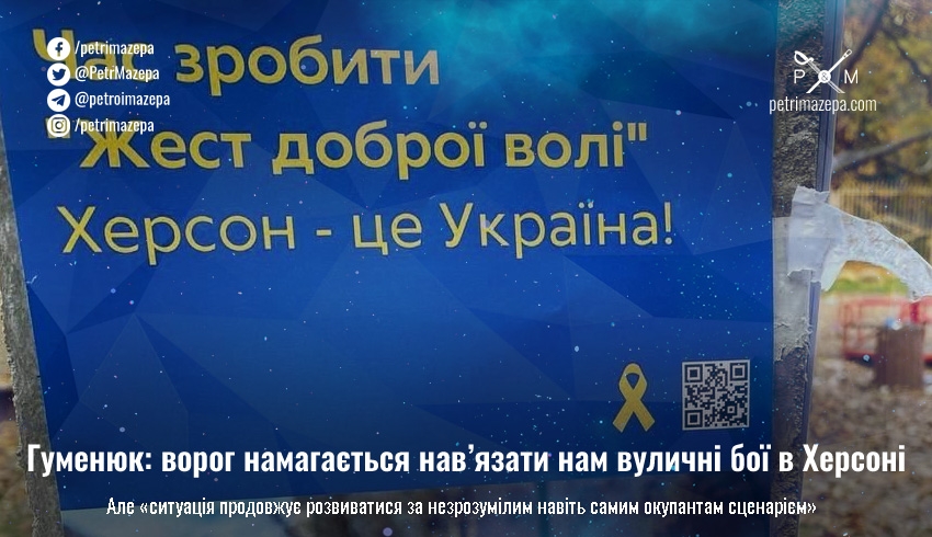 Гуменюк: ворог намагається нав’язати нам вуличні бої в Херсоні