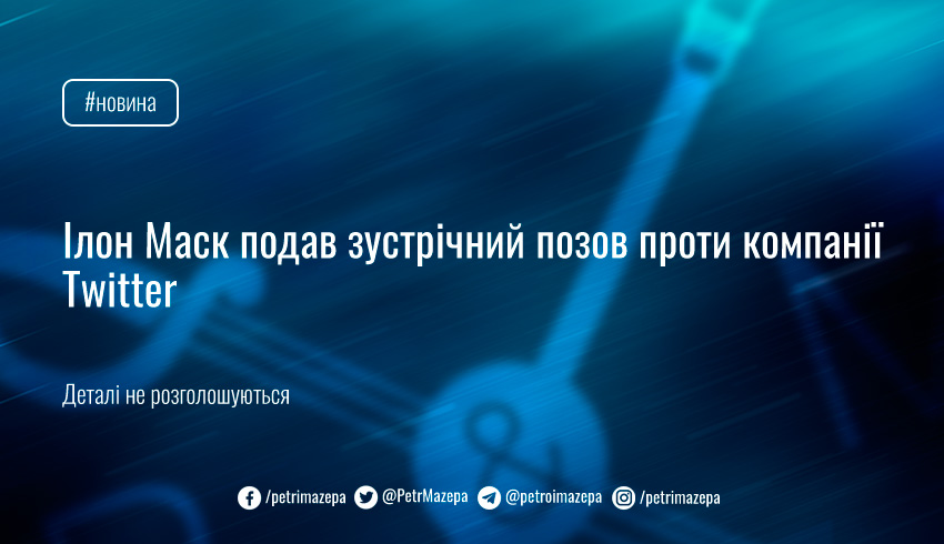 Підприємець Ілон Маск подав зустрічний позов проти компанії Twitter, однак подробиці наразі невідомі громадськості.