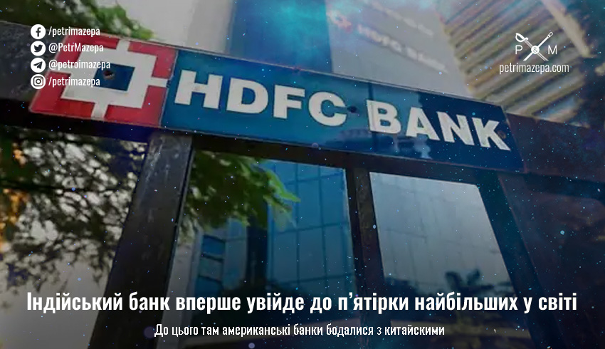 З 1 липня індійський HDFC Bank увійде до п'ятірки найбільших банків у світі. Це стало можливим після об'єднання HDFC Bank з іпотечним кредитором Housing Development Finance Corp.