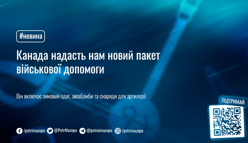Канада надасть Україні новий пакет оборонної допомоги на загальну суму 25 мільйонів канадських доларів (близько 19 мільйонів доларів США).