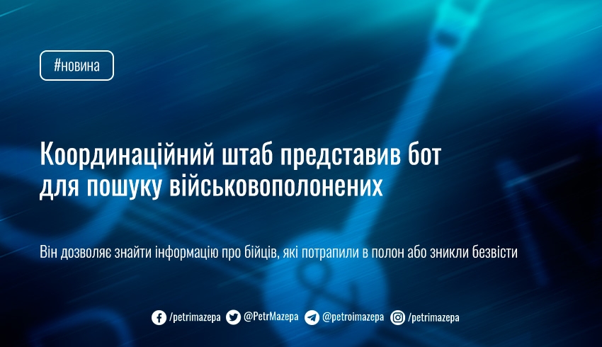 У Координаційному штабі поводження з військовополоненими створили спеціальний Telegram-бот для пошуку.