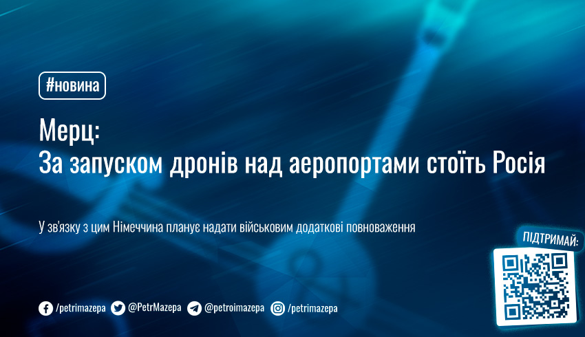 Канцлер Німеччини Фрідріх Мерц припустив, що Росія стоїть за запуском більшості дронів, помічених над Німеччиною і Данією.