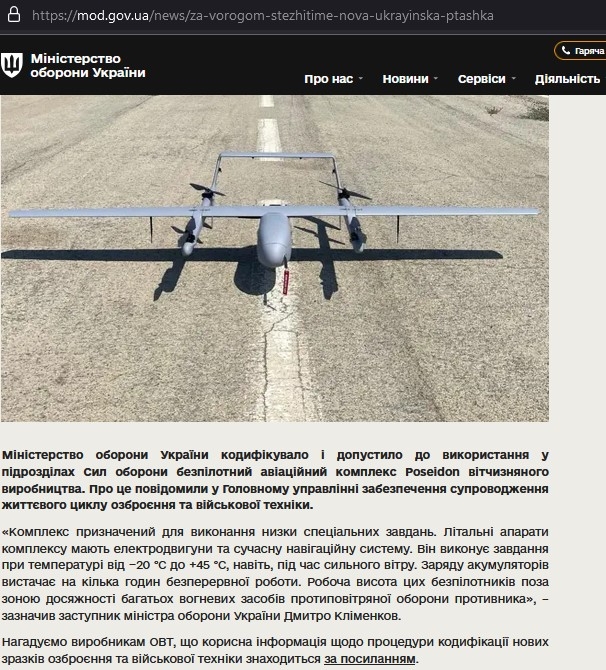 Міноборони допустило до використання в ЗСУ безпілотний комплекс Poseidon