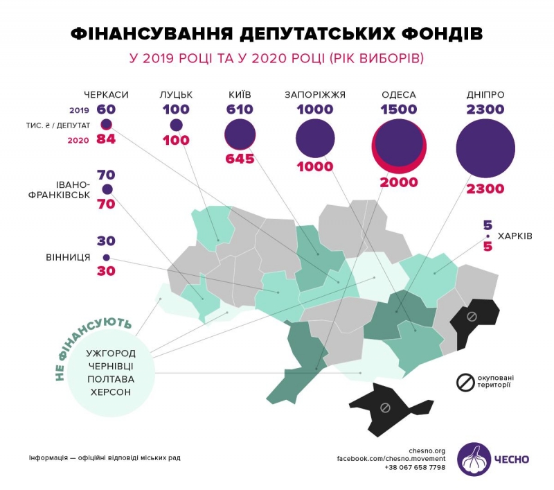 «У депутатів міських рад є доступ до бюджету, який вони можуть використовувати для власного піару. Це так зване бюджетне гречкосійство. Низка місцевих рад в обласних центрах має депутатські фонди, з яких депутати можуть роздавати матеріальну допомогу. Депутати, як правило, визнають, що це «совковий» рудимент, який має бути скасований, бо кошти і блага тим, хто цього потребує, мають надавати не з депутатських фондів, а відповідні соцслужби, але ж депутати самі проти себе не підуть і не готові скасовувати такий інструмент, бо це — конкурентна перевага».