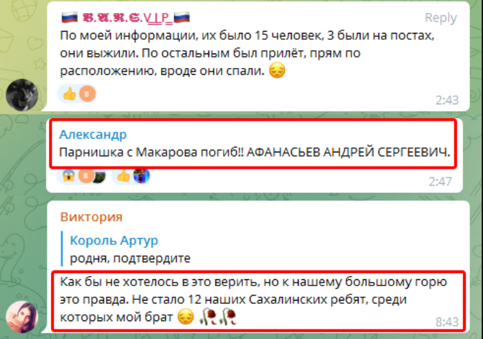 24 липня голова Луганської ОВА Сергій Гайдай розповів, що під Лисичанськом були «демілітаризовані» рашисти із Сахаліну. У місцевих пабликах цієї частини країни-агресора українським новинам не вірили… Поки до чату не увійшли родичі знищених ОМОНівців, а один із тих, хто вижив, не поділився відео.