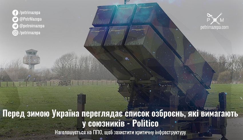 Перед зимою Україна переглядає список озброєнь, які вимагають у союзників - Politico
