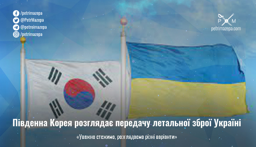 Південна Корея слідкує за ситуацією на полі бою в Україні. Сеул розглядає різні варіанти, коли йдеться про допомогу Києву летальною зброєю.