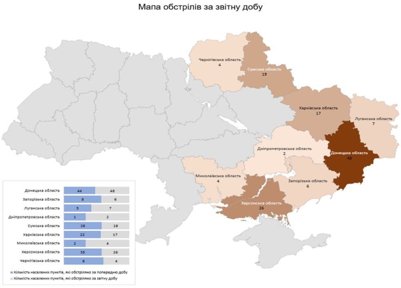 Крім того, окупанти завдали 52 авіаційних ударів, здійснили близько 60 обстрілів із реактивних систем залпового вогню. Внаслідок обстрілу Лимана вісім цивільних загинули та 13 поранені.