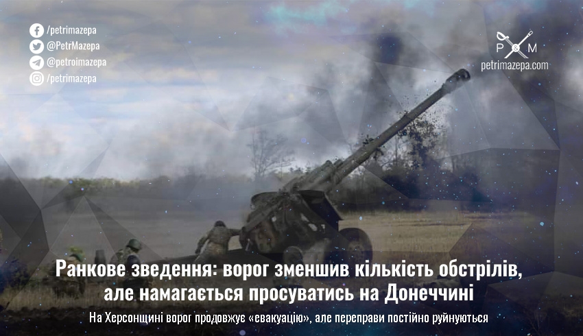 Ранкове зведення: ворог зменшив кількість обстрілів, але намагається просуватись на Донеччині