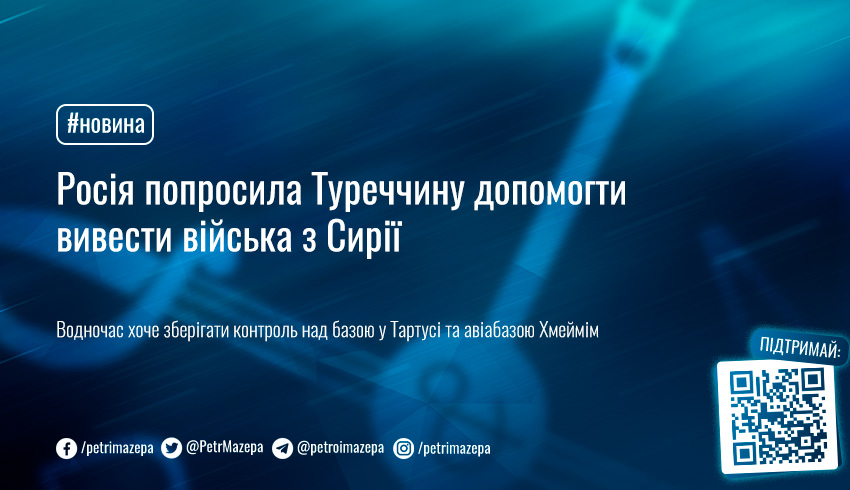 Росія попросила Туреччину забезпечити безпечний вивід своїх військових із Сирії після краху режиму диктатора Башара Асада.