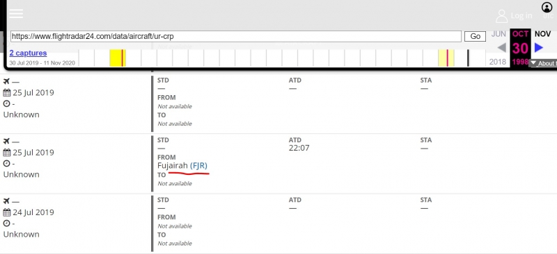 Навіть онлайн-сервіс архіву інтернету показує, що у системі Flightradar24 зафіксовано виліт одного зі знищених Іл-76ТД із бортовим номером UR-CRP з аеропорту Фуджейра (ОАЕ) 25 липня 2019 року. За кілька годин до того, як по ньому завдали удару на летовищі в Ель-Джуфрі.