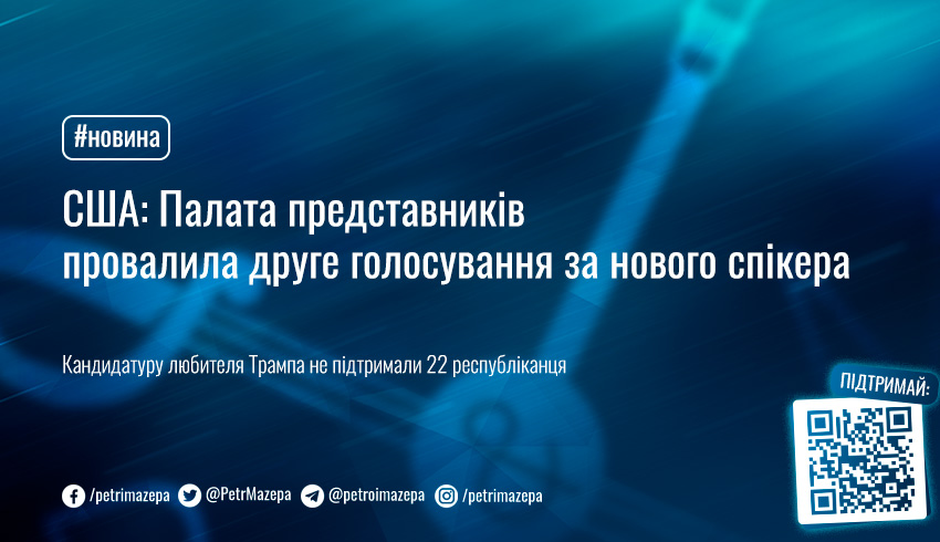 Республіканець Джим Джордан, який виступає проти допомоги Україні, не зміг набрати необхідну кількість голосів (217), причому його кандидатуру не підтримали 22 представника його ж партії.