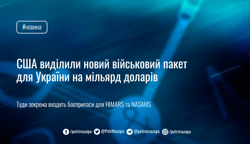 Міністерство оборони США санкціонувало надання Україні нового пакету військової допомоги на мільярд доларів.