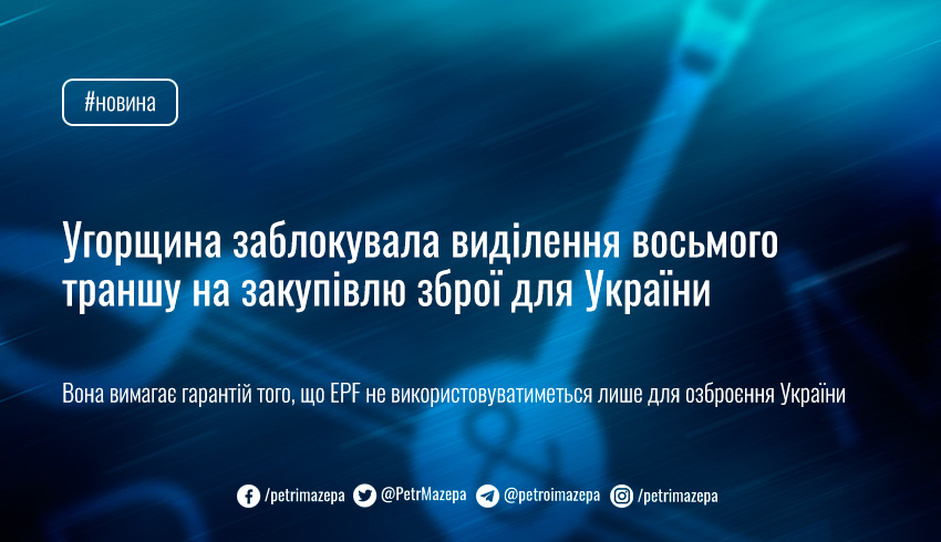 Угорщина сьогодні, 15 травня, заблокувала виділення восьмого траншу коштів з Європейського фонду миру (European Peace Facility, EPF) на закупівлю озброєння, призначеного для України.