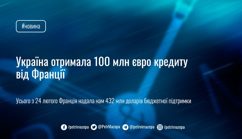Загальна сума прямої бюджетної підтримки від Франції з 24 лютого становила 432 млн дол., зазначило міністерство.