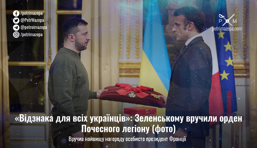 Президент Володимир Зеленський отримав від президента Франції найвищу нагороду — орден Почесного легіону. Це відзнака не лише для нього, а для всього нашого героїчного народу, пояснив сам президент.
