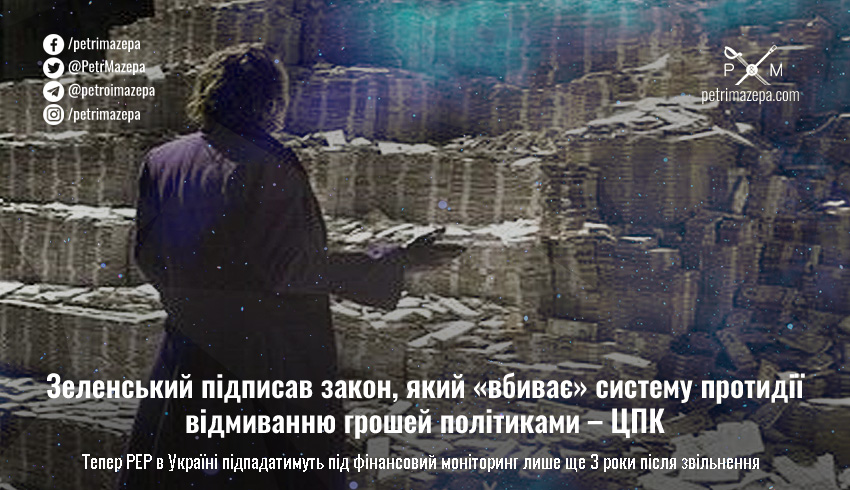 Зеленський підписав закон, який «вбиває» систему протидії відмиванню грошей політиками – ЦПК