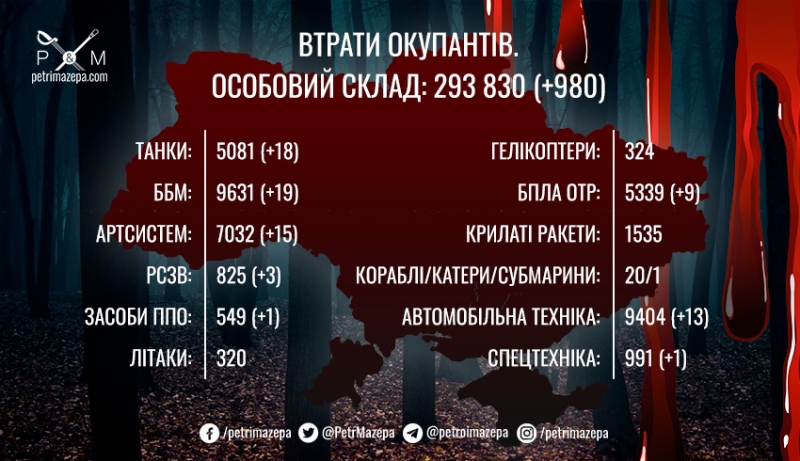 Протягом минулої доби, 21 жовтня, Росія завдала шести ракетних і 53 авіаційних ударів, здійснила 54 обстріли з реактивних систем залпового вогню. На жаль, є загиблі й поранені серед цивільного населення.